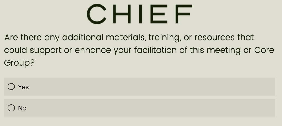 The recap focuses on questions that allow the Chief team to best understand what happens in a Core meeting and how we can improve a Core Group’s experience, including: